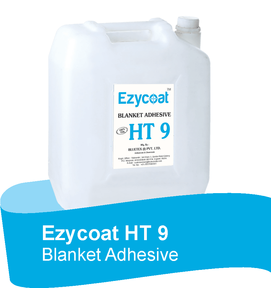 Bluetex – HT 9 is colorless, liquid thermoplastic based blanket adhesive for the safe adhesion of fabric on the rubber/PU blanket of flatbed printing machine. The adhesive gives tackiness at a particular temperature.