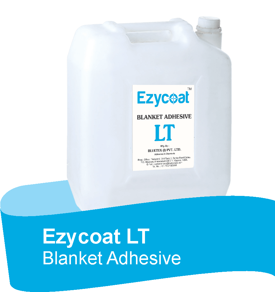 Bluetex – LT NEW is colourless, liquid thermoplastic based blanket adhesive for the safe adhesion of fabric on the rubber/PU blanket of flatbed printing machine. The adhesive gives tackiness at a particular temperature.